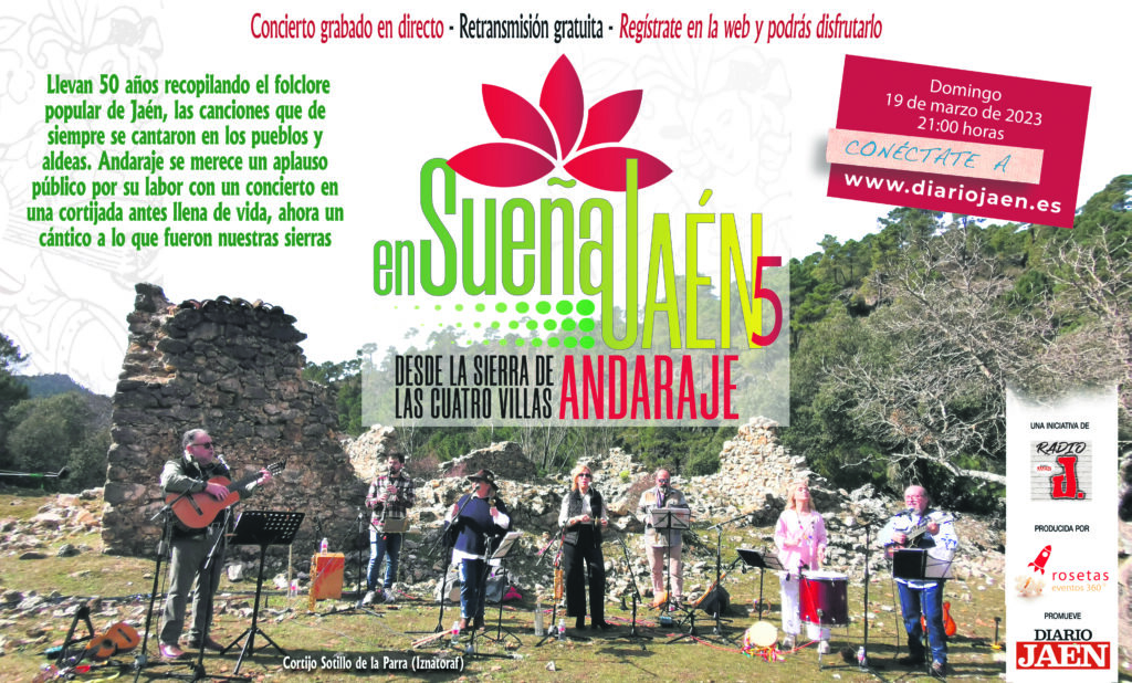 Muchas gracias a Diario Jaén y su director Juan Espejo por esta iniciativa a favor de los pueblos y comarcas de Jaén, por haber pensado en Andaraje para el proyecto. El gran proyecto musical y cultural EnSueña Jaén, por Jaén y para Jaén, promovido por Diario JAÉN y Radio J, que impulsa su productora Rosetas Eventos 360º. Cómo no, gracias a todo el equipo técnico que nos acompañó con su duro y excelente trabajo durante toda la jornada y sin el cual hubiese sido imposible su realización. ¡Gracias!