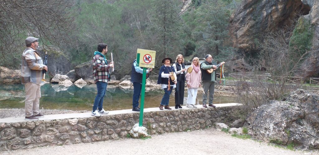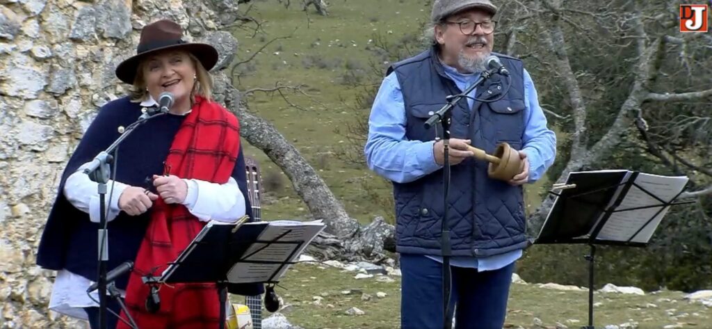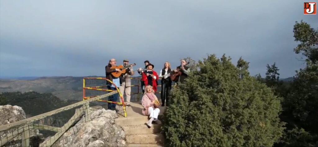 A primera hora de la mañana dio comienzo la jornada junto al coso de Villanueva del Arzobispo, punto de reunión de la caravana, para iniciar el ascenso a la sierra por la carretera del Tranco hasta el desvío del «Charco del aceite», en el que hicimos la primera parada para dar comienzo a las tomas iniciales entonando ya los cantos de nuestros antepasados que aún resuenan por esas latitudes, tras lo cual reemprendimos la marcha ascendente por la carretera transversal de la Sierra de las Villas que conduce hasta la «Cueva del Peinero» ya en las cercanías de Mogón, pasando por el mirador del «Tapadero», impresionantes vistas sobre toda la comarca, en el que también se rodaron algunos de los cantos del recital