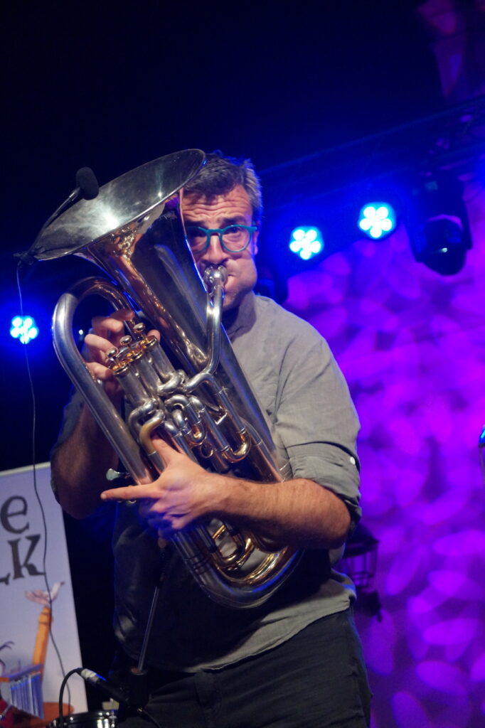 Recordemos que el primero de los bloques de esta edición de la Cita Folk tuvo lugar el cuatro de mayo, plana primavera, en el entorno de la fiesta de la Cruz de capital importancia en el calendario festivo de nuestro pueblo. Fue Gabriel Calvo con su espectáculo «FOLKLORQUIANDO» quien inauguró el ciclo, y no pudo haber mejor elección, el público que llenó la Casa de la Cultura dio fe de ello.