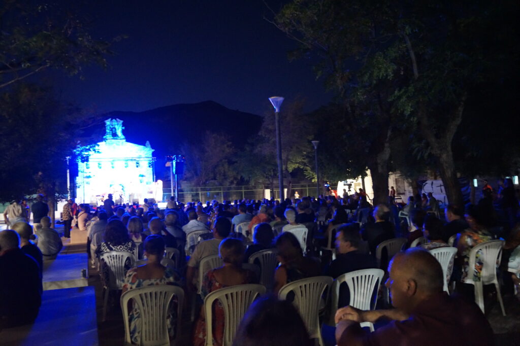 La tormenta que descargó violenta y abundantemente durante más de una hora a partir de las seis de la tarde empapó de agua, no ya la sedienta tierra, sino la madera del escenario, el cableado, las torres de iluminación, en fin, toda la tramoya que un espectáculo como éste implica, lo que hizo que tuviésemos que valorar la suspensión del programa toda vez que el traslado era imposible a esas alturas… Arriesgamos y acertamos, ambos conciertos se desarrollaron sin incidentes de mención salvo que, por razones obvias, no pudo utilizarse buena parte del dispositivo de iluminación preparado.